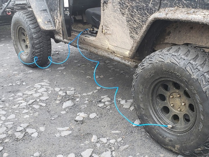 A friend of mine built this 4-tire deflation/inflation system for his Jeep.
